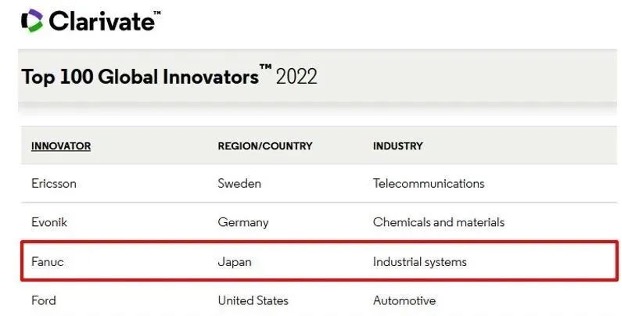 近日,全球领先的专业信息服务提供商科睿唯安(Clarivate)揭晓“2022年全球百强创新企业”榜单,FANUC凭借行业领先的创新和研发实力荣登榜单,这也是FANUC第三次获得此荣誉。