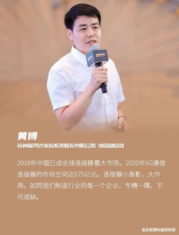 苏州瑞可达连接系统股份有限公司集团副总裁黄博现场分享《5G时代连接器市场现状及发展》。