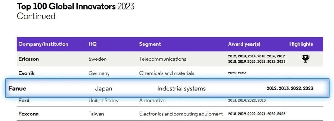 近日,全球专业信息服务提供商科睿唯安 (Clarivate)揭晓“2023年全球百强创新企业”榜单,FANUC凭借行业领先的创新和研发实力荣登榜单,这也是FANUC第四次获得此殊荣。
