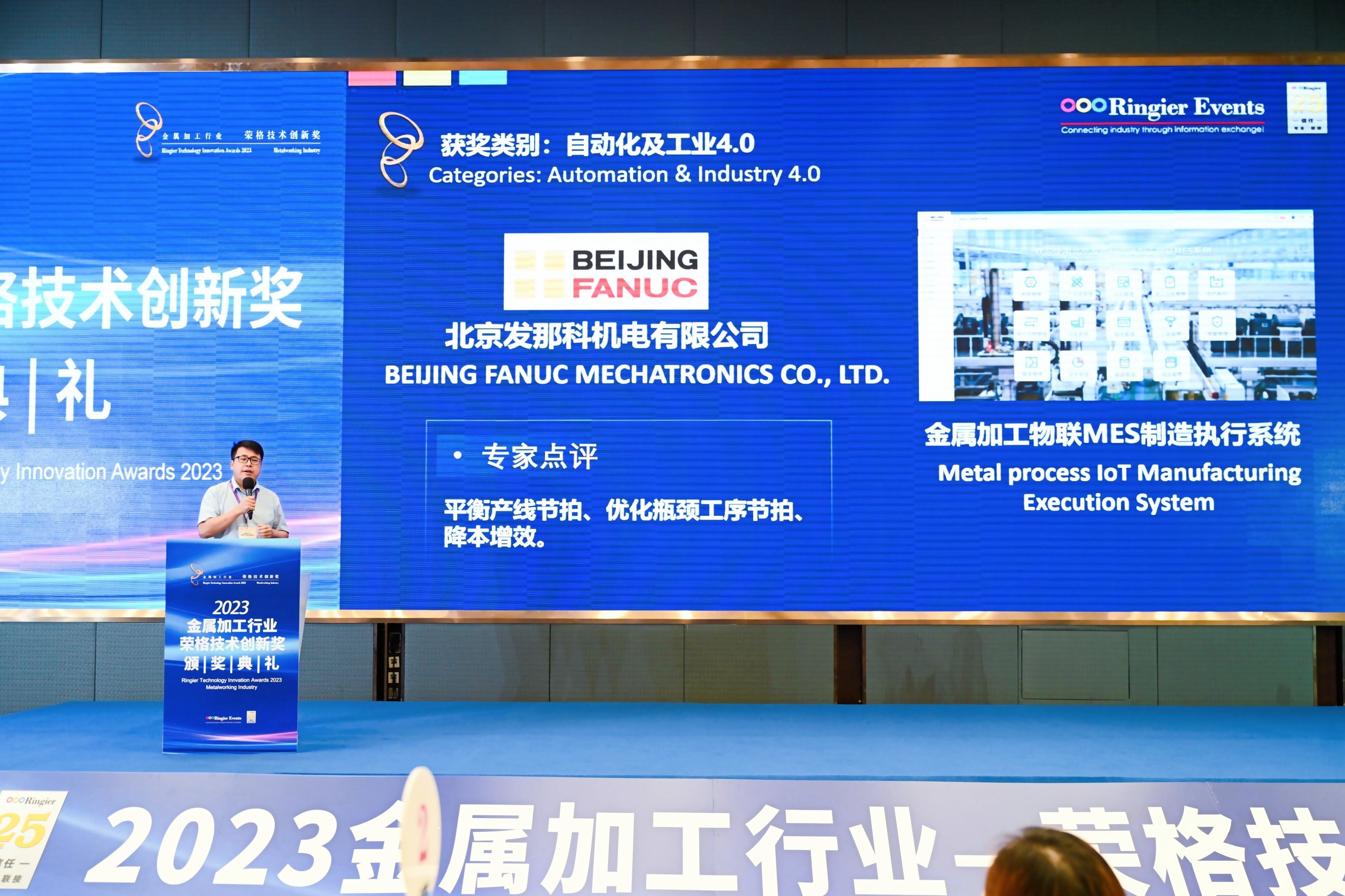 2023年5月26日,2023金属加工行业荣格技术创新奖颁奖典礼在上海举行,我司金属加工物联MES制造执行系统,荣获自动化及工业4.0类别“技术创新奖”。