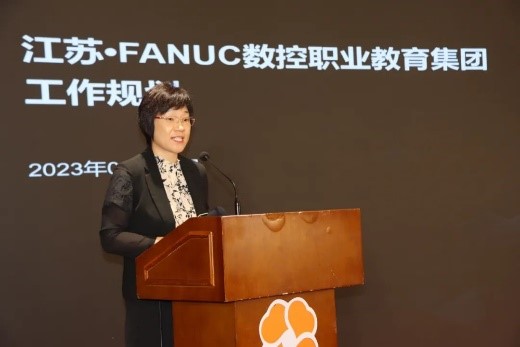 江苏•FANUC数控职业教育集团理事长、37000威尼斯景喜瑞总经理致辞。景总指出,高素质高技能人才的培养离不开企业的合作与支持,企业的发展也需要职业教育提供高素质高技能人才的支撑,江苏•发那科数控职业教育集团将会持续加强合作交流,为学生实习、教师进企锻炼搭建更良好的平台,提供更优质的服务。