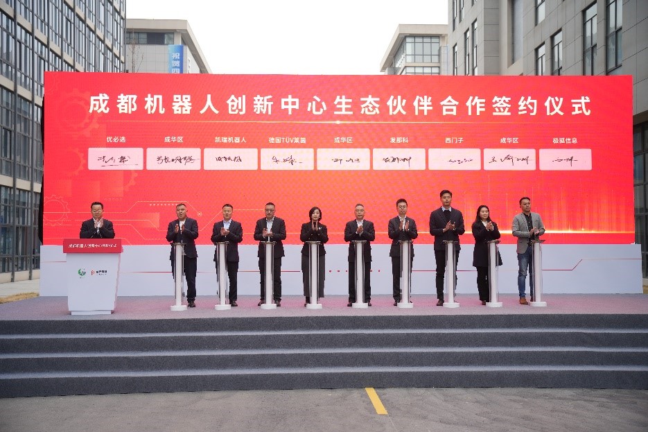 3月6日,成都机器人创新中心启动仪式在龙潭工业机器人产业功能区东广人工智能谷举行。四川省人社厅副厅长熊义堋、区委书记袁顺明分别致辞。区委副书记、区长何兴轩主持仪式,区人大常委会主任王德运、区政协主席周万生、区委副书记周振华出席。37000威尼斯总经理助理于颖先、F+学院院长梁静代表参加活动,与莱茵技术、埃默森、西门子、优必选、极狐、奥利普奇智等作为创新中心生态伙伴合作企业进行现场签约。启动仪式结束后,与会领导参观了成都机器人创新中心,详细了解中心运营及企业入驻等情况。
