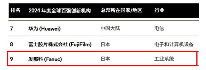 近日,全球专业信息服务提供商科睿唯安(Clarivate)揭晓“2024年全球百强创新企业”榜单,FANUC凭借领先的创新和研发实力荣登榜单,这是FANUC第五次,也是继2022、2023年后连续第三年获得此殊荣。